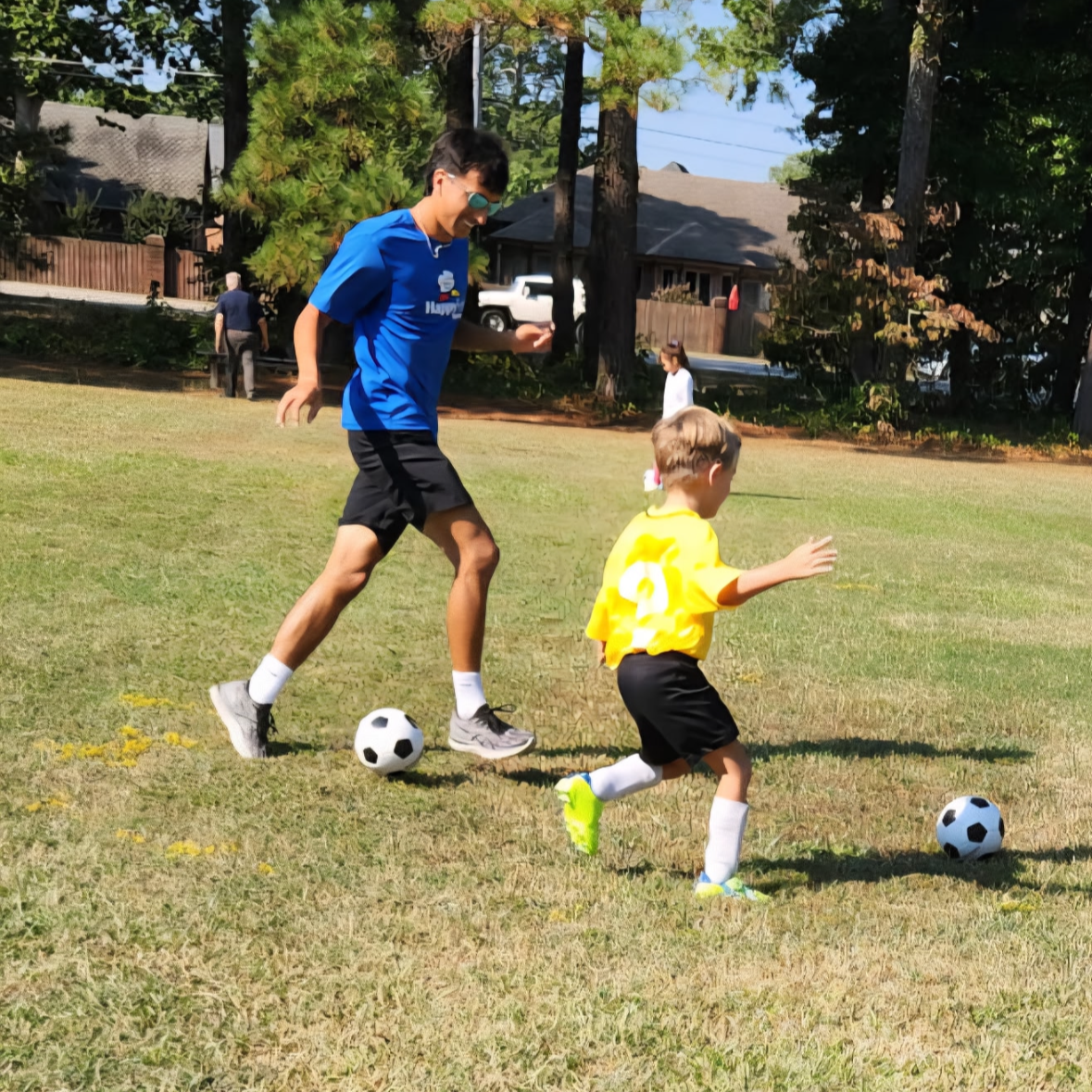 Her oldest daughter started playing soccer a year ago with her husband as the coach. Her passion for soccer was reignited watching her play. She saw her daughter go from barely touching the ball during a game, to scoring her first goal. It was exhilarating. When she joined Happy Feet she believed it was the perfect fit for her because she is a mom who loves kids and soccer. She is so excited to be a fun, positive, encouraging role model for many other children!